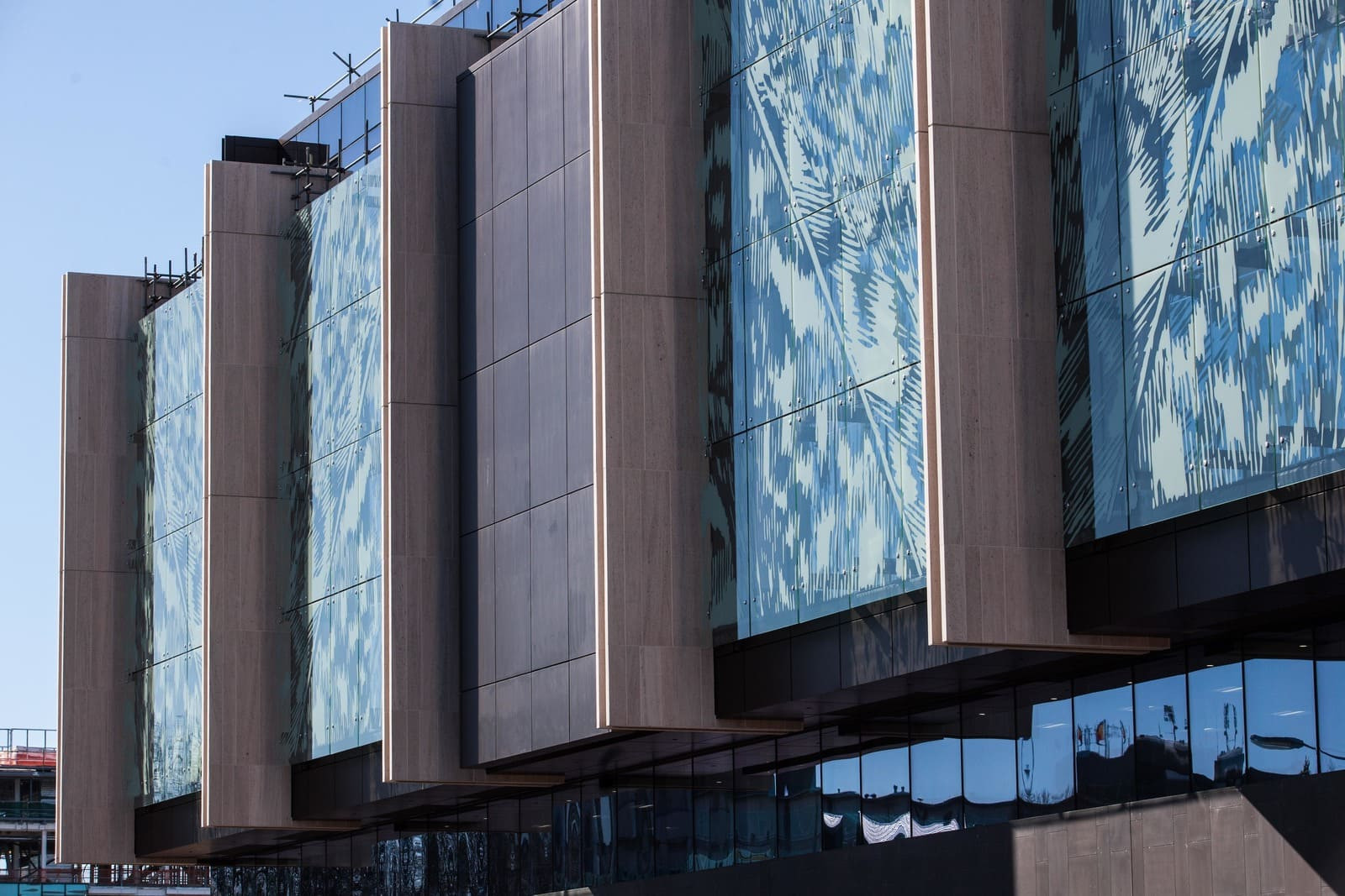 Solar control: Metro was engaged to produce the frameless digitally printed glass fins to the ground floor and the and west-facing rain screen on the Durham Street elevation. This is fritted (digitally printed) to control solar gain from the afternoon sun.