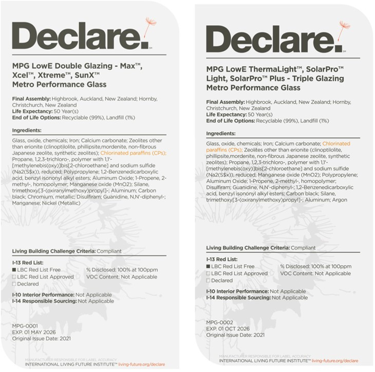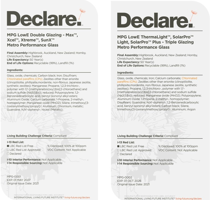 The first glass company in New Zealand to attain Declare Label (Red List Free) certification.